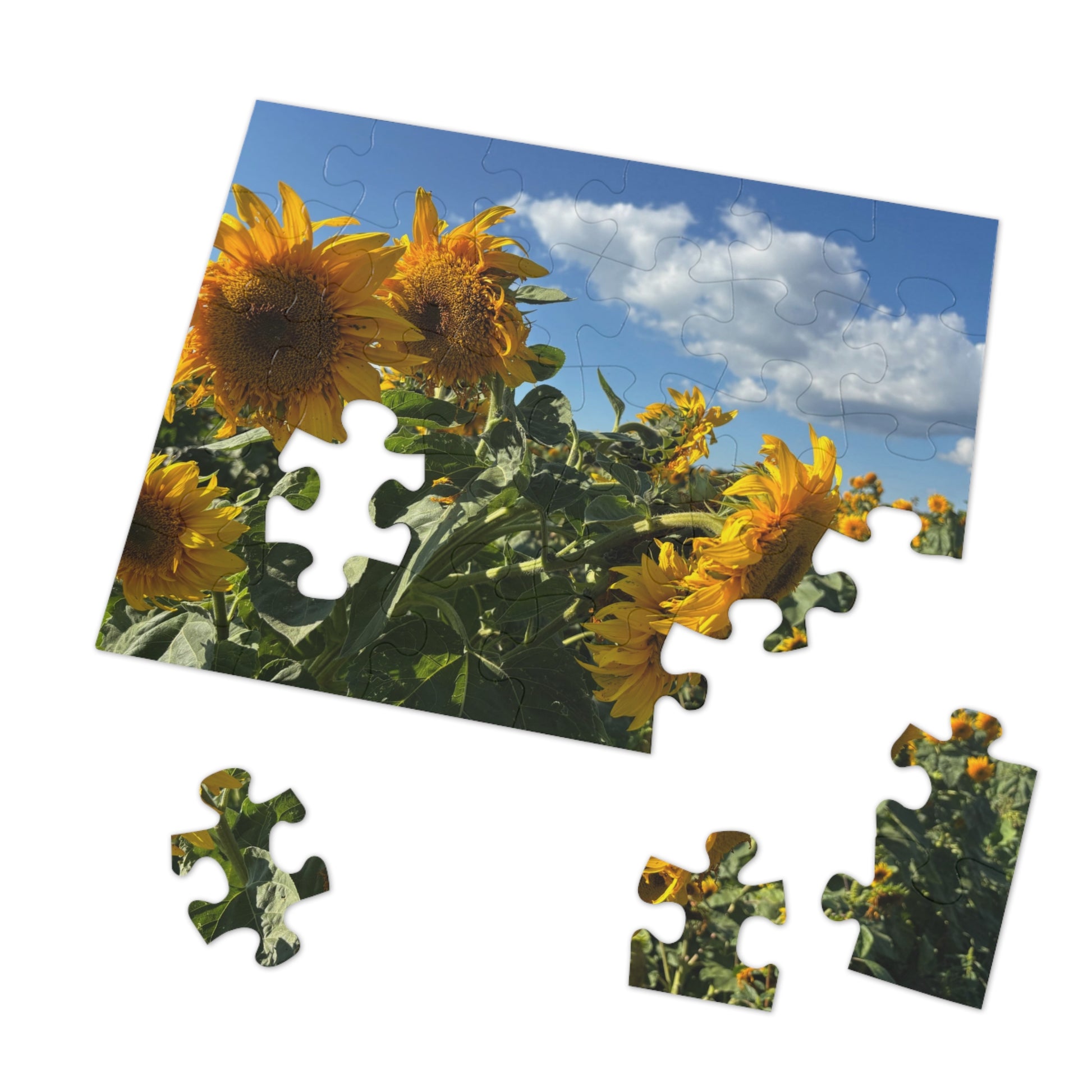 Why settle for staring at your neighbor’s questionable lawn ornaments when you could be basking in the sunny glory of a sunflower—without needing to water it or shoo bees away? This puzzle captures the golden cheer of a sunflower and lets you piece it together one petal at a time.